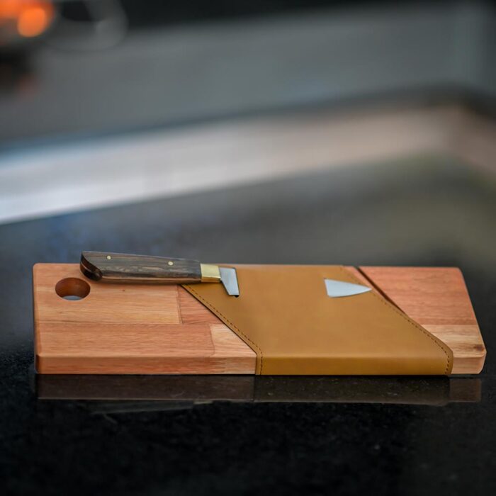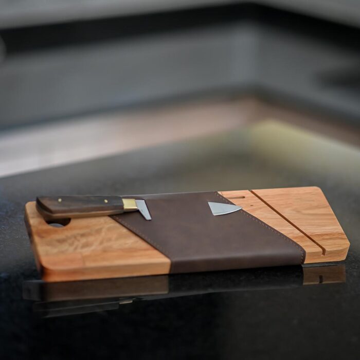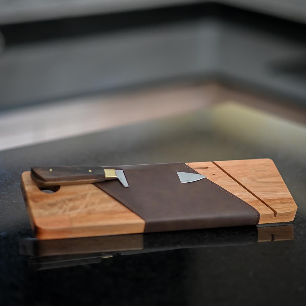 Set salamera con cuchillo y estuche de ecocuero. Compacto, elegante y 100 % personalizable. Ideal para obsequios corporativos de bajo volumen.