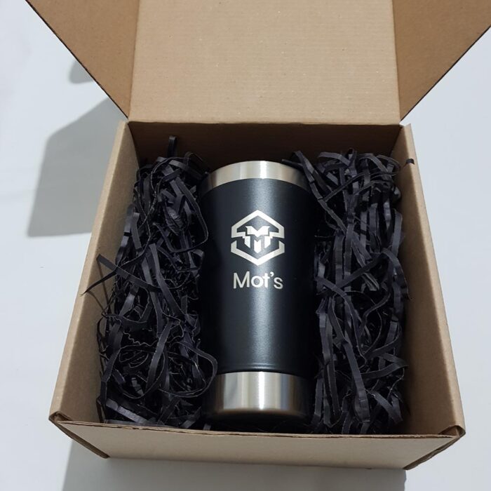 Vaso térmico en caja personalizada. Elegante, funcional y con grabado láser. El detalle ideal para destacar tu marca.
